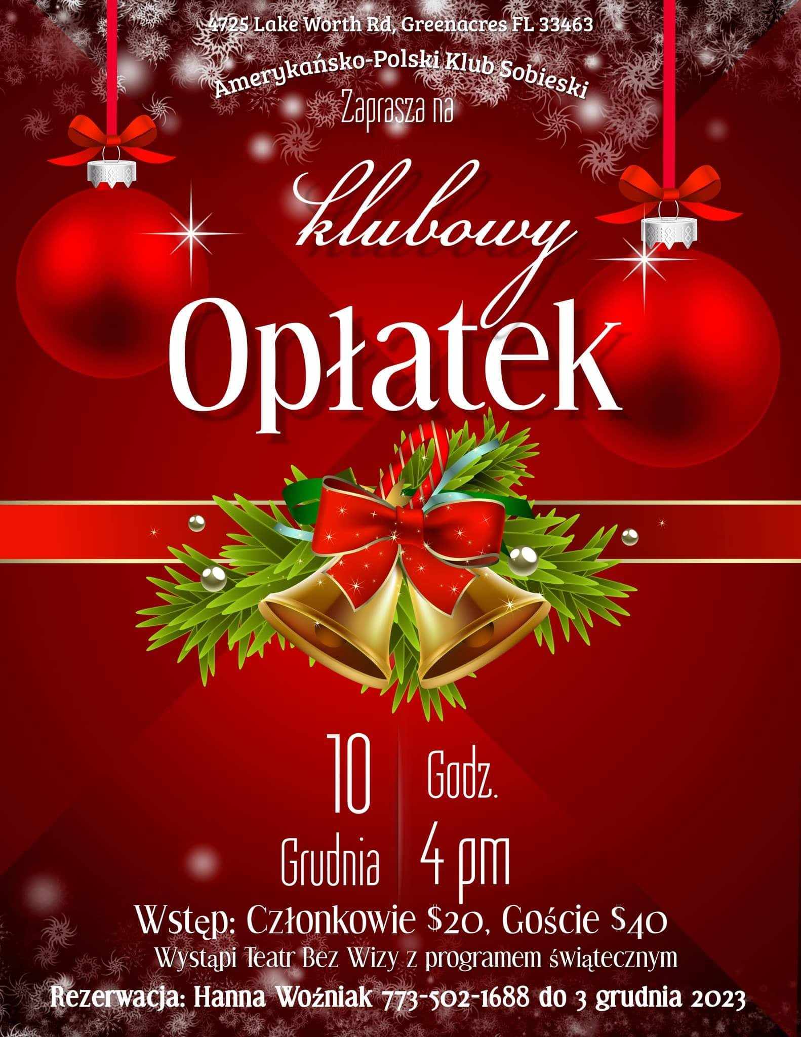 Klub Sobieski zaprasza jak co roku na imprezę świąteczną czyli tradycyjne dzielenie się opłatkiem, wspólne śpiewanie kolęd i oczywiście delektowanie się wigilijnymi potrawami.