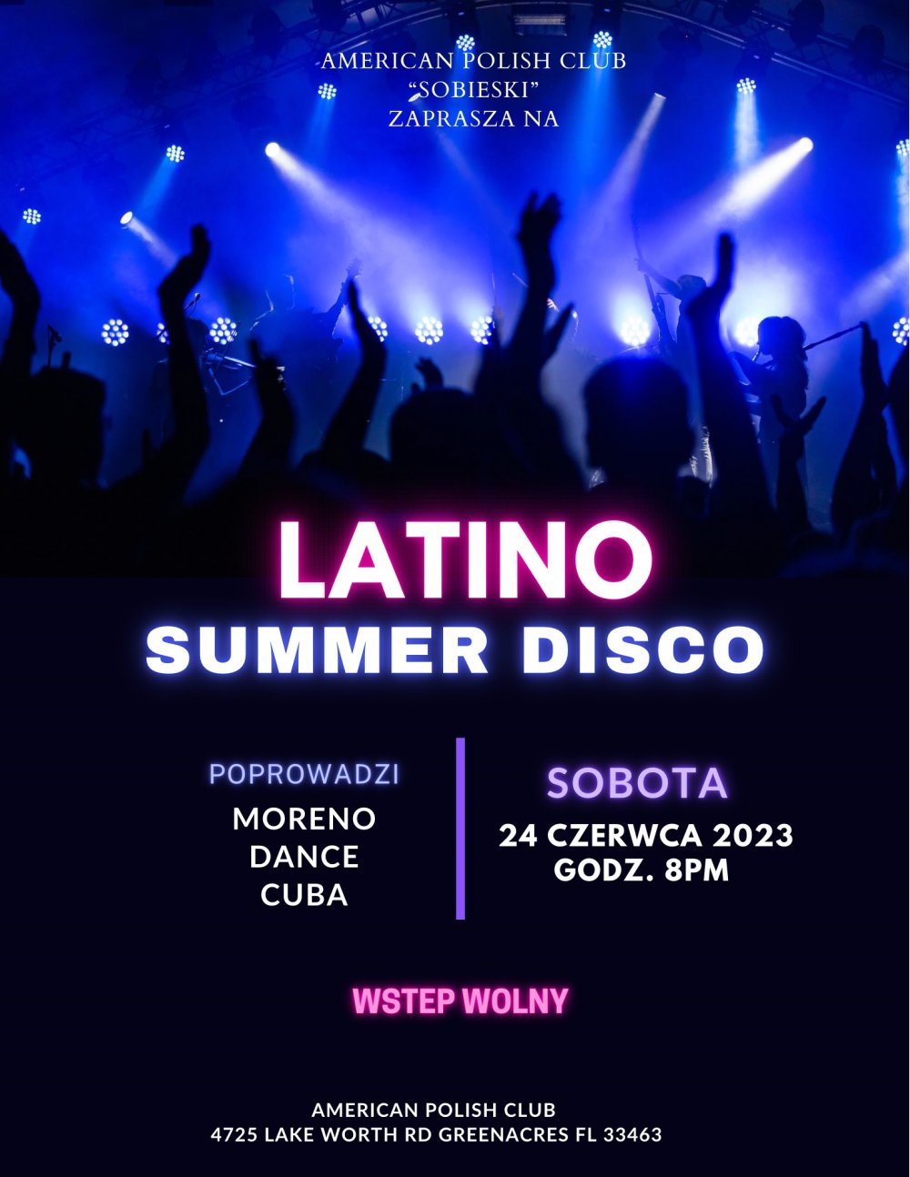 Latino Summer Disco Wszystkich lubiących tańczyć zapraszamy na gorącą dyskotekę ze znanym instruktorem tańca z Kuby. Sobota, 24 czerwca, godzina 8 PM Czekamy na Was! Post Navigation ← Previous PostNext Post →