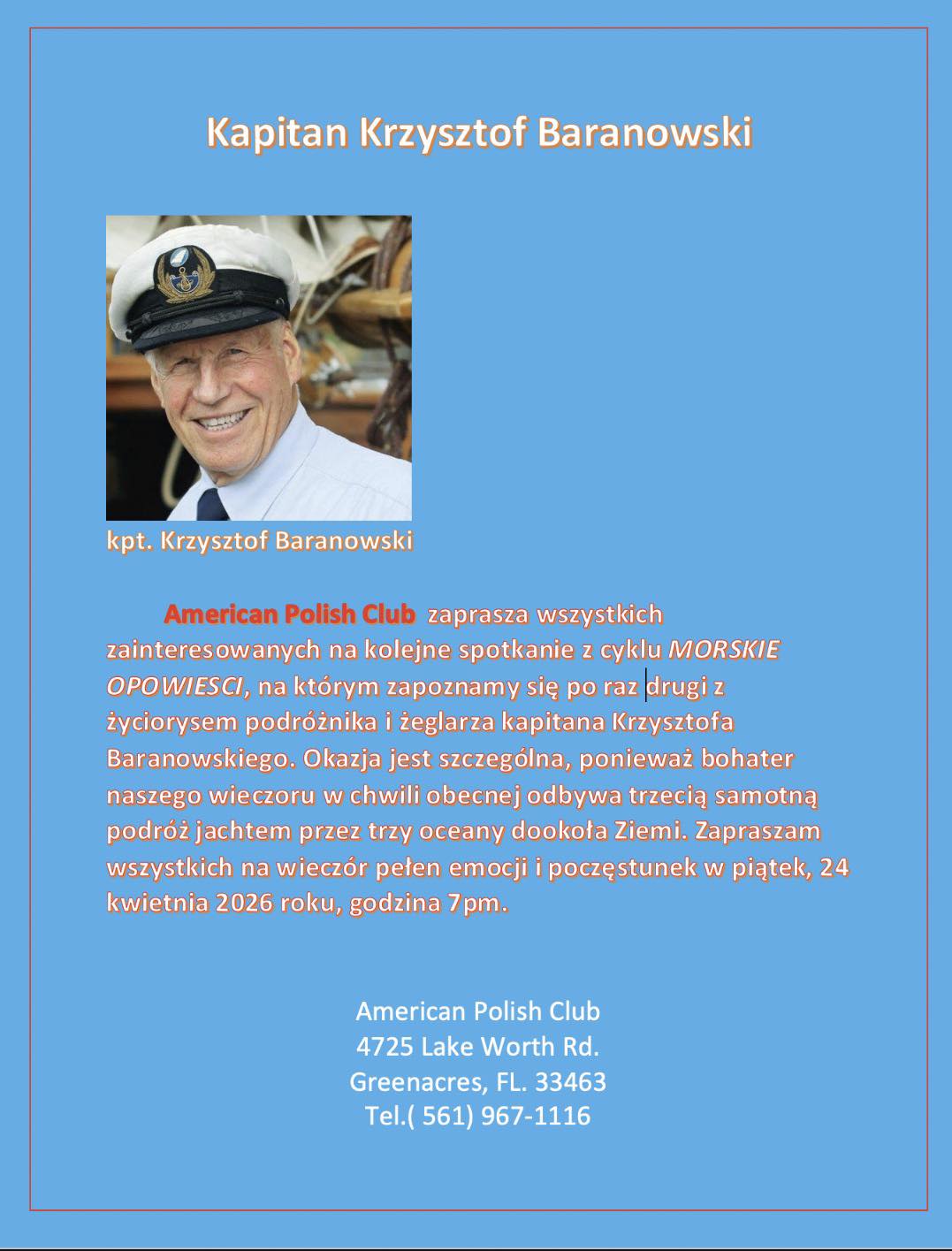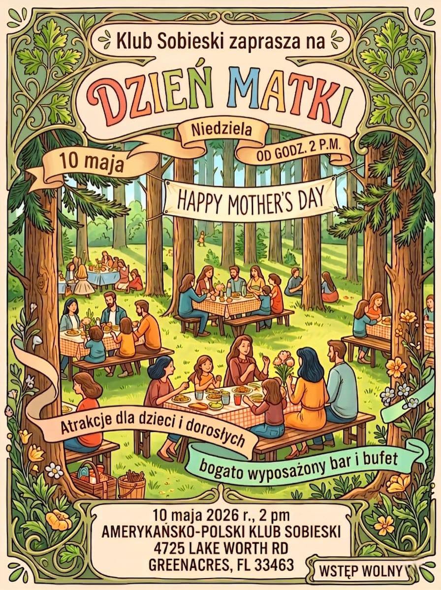 KOMUNIKAT DO CZŁONKÓW AMERYKAŃSKO – POLSKIEGO KLUBU “SOBIESKI” W GREENACRES Drodzy Członkowie Klubu, Szanowni Państwo!Pragniemy poinformować, że w dniu 15 marca 2026 roku w siedzibie